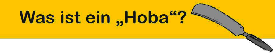 Das Wort „Hoba“ hat zwei Bedeutungen. Einmal bezeichnet es ein kräftiges Haumesser mit einer nach abwärts gekrümmten Spitze. Man brauchte es früher zum Abhauen kleiner Äste, zum Reisigmachen und zum Abschlagen der Köpfe an den Futterrüben. „Hoba“ ist aber auch das viel kleinere, oft einklappbare Rebmesser, das man als Wengerter brauchte zum Rebschnitt und zum Schneiden der Weideruten, die zum Anbinden der Reben an den Pfahl genutzt wurden.